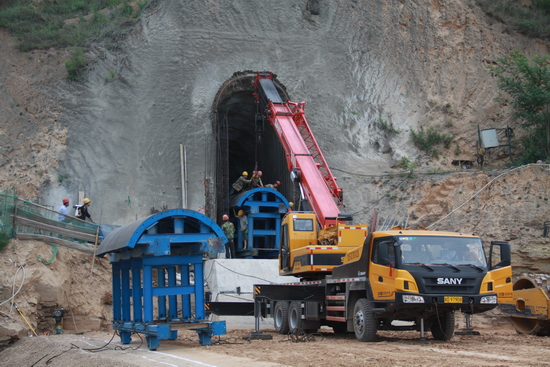 大壩左岸灌漿平洞砼鋼模臺車(chē)安裝