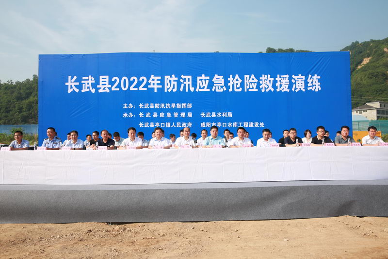 為切實(shí)提高全縣防汛指揮調度水平和應急搶險救援能力。8月3日,由縣防汛抗旱指揮部主辦,縣應急管理局、縣水利局、亭口鎮、咸陽(yáng)市亭口水庫工程建設處承辦的長(cháng)武縣2022年防汛應急搶險救援演練在黑河亭口段舉行。